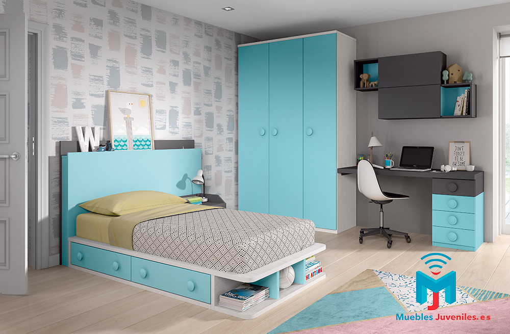 Cama Juvenil con Contenedores Adaptable en Medidas y Colores