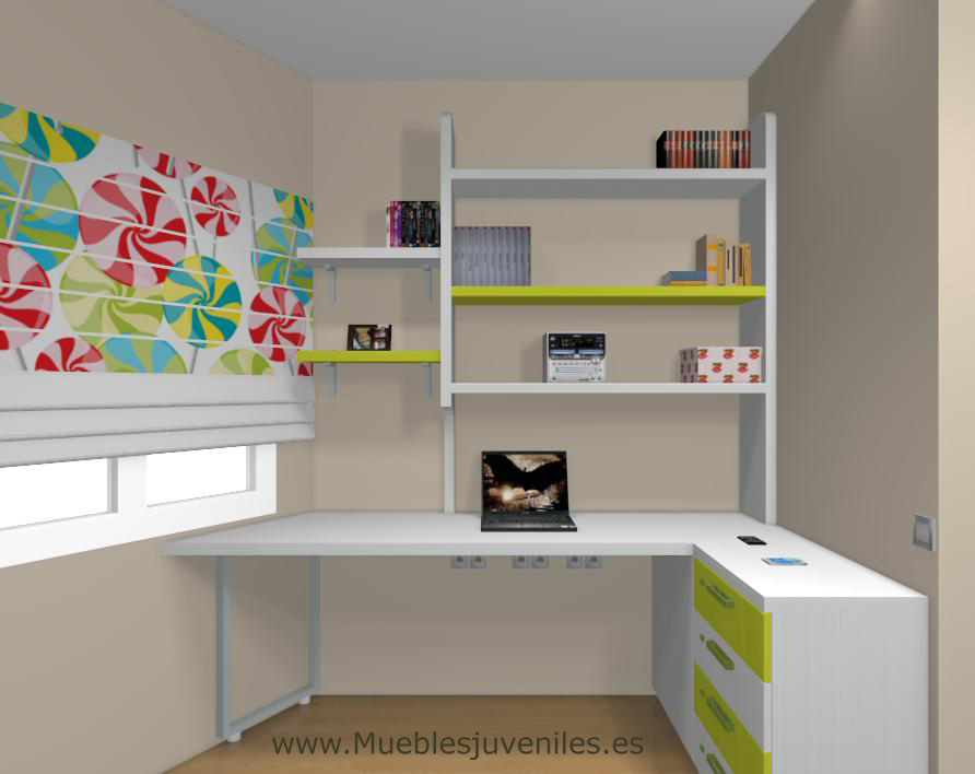 Mesa Estudio en Rincon Achaflanado con Buc Auxiliar y Estanteria
